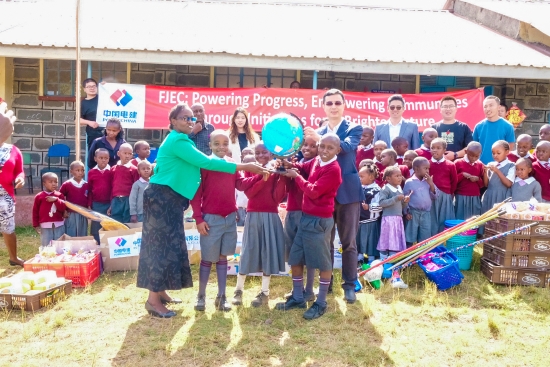 了解情況后,福建公司志愿者們在小學舉辦了愛心捐贈儀式。向學校捐贈價值約50萬肯先令(約合2.5萬人民幣)的學習用品、體育器材及辦公設施等物資,向他們表達電建人對當地青少年的愛心和祝福,為當地教育事業注入新的活力和希望。福建公司副總經理陳智敏表示,孩子是肯尼亞的未來,是中肯友誼的見證者。“希望通過這樣的捐贈活動,進一步激勵孩子們努力進取,長大后為自己的祖國建設做貢獻。”